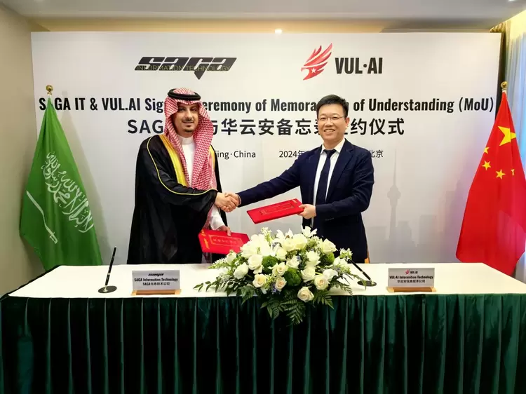 2024年5月7日,沙特SAGA集团主席萨达姆先生(Mr. Sattam Ibrahim S Alshethri)到访了位于中国北京的华云安科技总部。在此次访问期间,SAGA旗下信息技术公司(以下简称“SAGA IT”)与北京华云安信息技术有限公司(以下简称“华云安”)正式签署合作备忘录(MoU),预示着双方将在信息技术领域展开紧密合作,共同推进信息技术在沙特阿拉伯(KSA)和中东及北非地区(MENA)的基础设施项目中的应用。