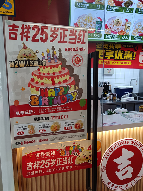 春末夏初,惠风和畅。5月6日,经典中式餐饮品牌吉祥馄饨的25周年庆活动正式拉开帷幕。通过一系列丰厚福利和超值折扣好礼,吉祥馄饨向每一位食客展现出深厚诚意与满满热情。