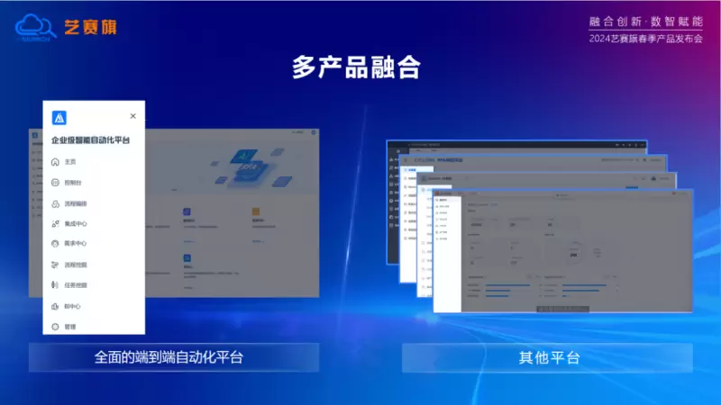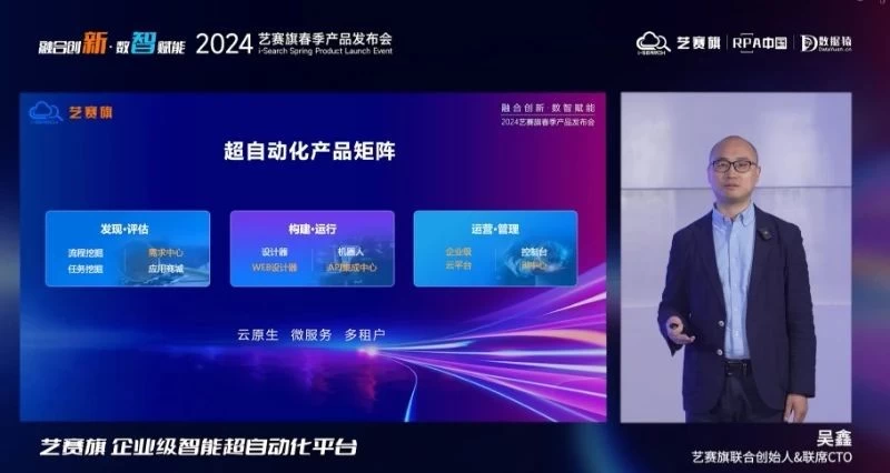 在这个过程中,技术创新和行业落地交错而行,无论对于企业客户还是技术服务商而言,都是一个巨大的机遇和挑战。此次艺赛旗发布融合超自动化、大模型等多项技术的“企业级智能超自动化平台”,以及行业配套落地解决方案,向外界充分展示了艺赛旗持续创新并引领行业的实力。