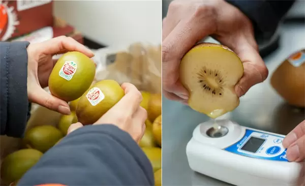 为了让远道而来的佳沛奇异果保持最新鲜的滋味,万纬东莞万江冷链园区将二号库精心打造为万纬在大湾区的首个鲜果运营中心。每颗源自新西兰的奇异果进入冷库后,都需要经过温度、糖度、硬度等各项质量指标检查,筛选以剔除瑕疵果,并进行分拣、装盒、贴标、打托,不同的奇异果被运往对应的冷藏室中冷藏存储。