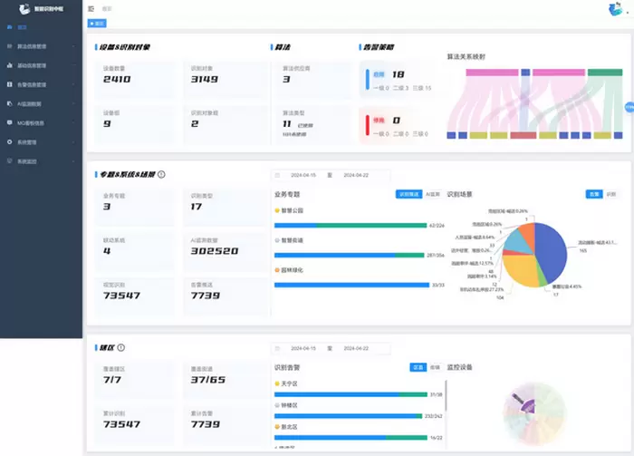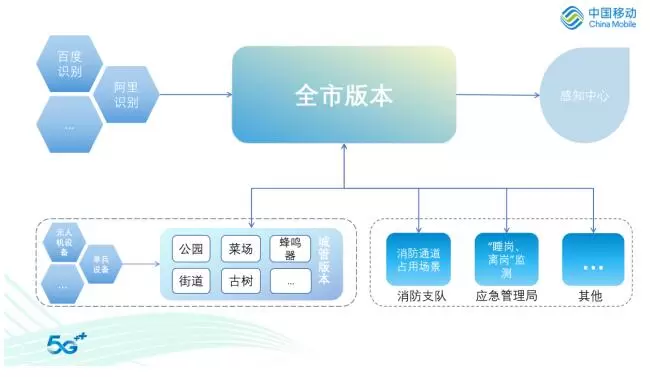针对常州市政府侧视频AI识别采用“统筹算力建设,汇聚阿里、移动、百度等一线厂商优势算法,统一能力输出给各级政府部门应用”的方式,常州移动以“上接市级统一算法平台,外联各类政府部门业务应用”的中枢思维为指导方向,基于常州市城市运行管理服务平台各业务系统应用市级算法能力的实例场景,总结归纳常州市城市运行“一网统管”AI识别应用方式落地到各级政府部门应用的底层逻辑,开创性地将各类政府部门视频AI识别具象化需求抽象为一套普适性的规范标准,打造出能支撑各级政府部门在城市治理、安全治理、社会治理等多领域应用市级统建算法算力的AI识别中枢。