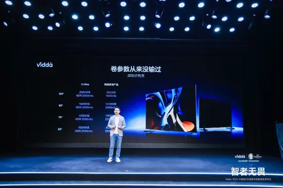 “可以说,卷画质,Vidda从来没输过。”发布会上,Vidda电视产品主理人介绍,本次发布的新品MiniLED全系列均具备千级以上分区,X85Ultra稳定峰值亮度可达XDR 2600nits,100/75/65英寸则是XDR2500nits,是目前同等价位段中亮度最高的产品。搭配了八晶方芯蓝宝石光学、AM背光驱动芯片等技术后,ViddaXUltra的超高的亮度保证了即便是在阳光直射的客厅,用户也可以看清屏幕上的内容。除了超高亮度之外,ViddaX100Ultra拥有2304分区精细控光,每个分区可以单独控制亮度,做到了明暗有细节、纵深有层次,不仅高亮环境看得清,暗光环境下看亮度自适应也不刺眼。