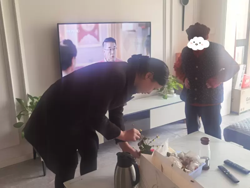 春节前夕,龙光地产眉山龙光·玖龙府一位业主到物业中心寻求帮助,说自己不会开电视,又不会用手机。楼栋管家小莫随业主回到家中帮忙打开了电视,交谈中得知业主是独自居住的老人,儿女都在外地,腿脚也不方便。于是,小莫只要有空余时间都会去给老人开电视,陪她聊天。
