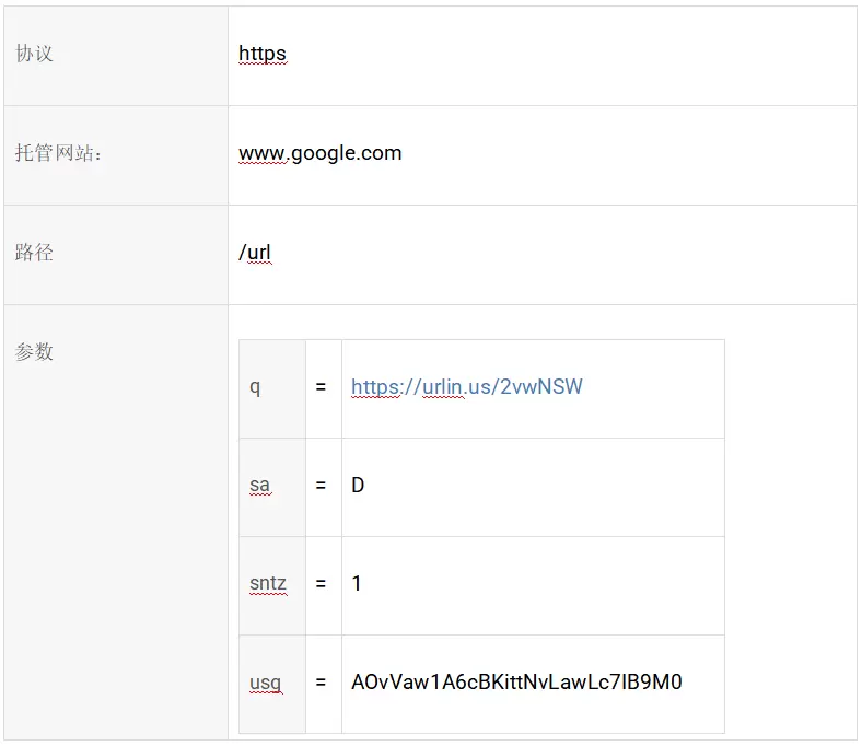 不过,可以通过添加非法参数usg来禁用此警告。该参数包含一个散列值或签名,可使google.com自动重定向到目标网站。