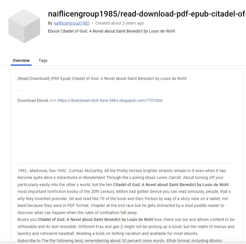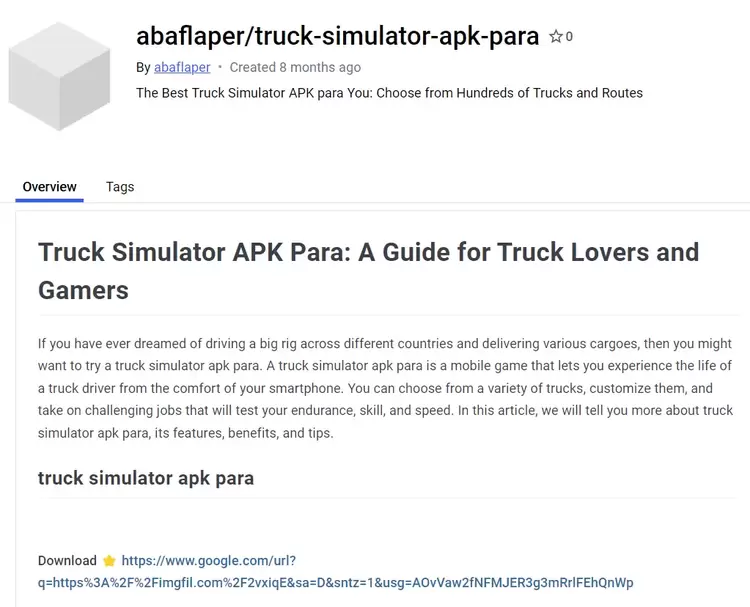属于该活动的存储库包含自动生成的文本,这些文本含有搜索引擎优化(SEO)文本,会建议下载盗版内容或视频游戏作弊器。此外,这些文本还包括所谓“广告软件”的链接。