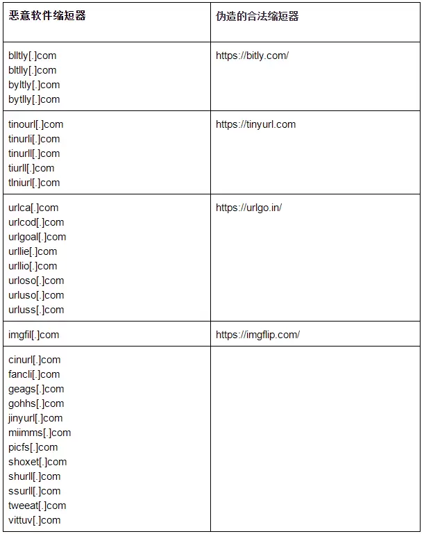 同一缩短链接每次收到后续请求都会带来不同的URL,并且如果托管恶意文件的服务器被关闭,缩短器将返回一个指向新活动服务器的链接。