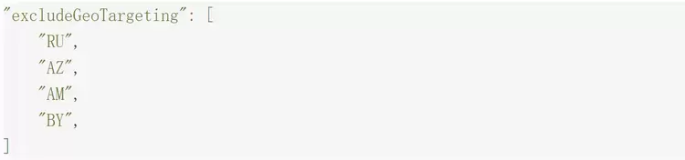 lexcludeGeoTargeting包含不应安装恶意软件的国家的代码