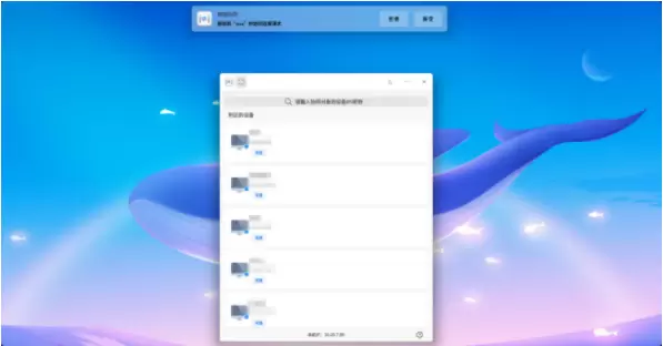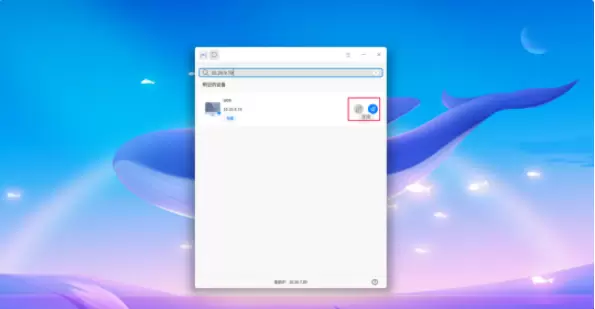 1、将两台电脑都开启跨端协同应用,就可以在设备列表中找到对端设备(系统默认设备昵称为“计算机名”,也可以自行修改)。需要特别注意,由于跨端协同的设备发现是基于“UDP组播”技术实现,可能会出现跨网段无法发现的问题,遇到这种情况,可以通过顶部搜索框搜索对端的ip,即可发现对端设备。