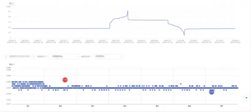 以 200 MWh 规模的储能电站为例,其一般包括几十台集装箱,共约百万个测点,以秒级频率进行采集,年数据量达到 TB 级别。而以集装箱为例,目前上海电气国轩系统已接入 1 GWh 容量、约 400 台设备,每台设备测点在 6000~8000 个左右,每个测点平均 15~30 秒更新一次数据。海量的时序数据增加了存储和计算资源的压力,超高的采集频率也对物联网终端设备的性能和稳定性提出了更高的要求。