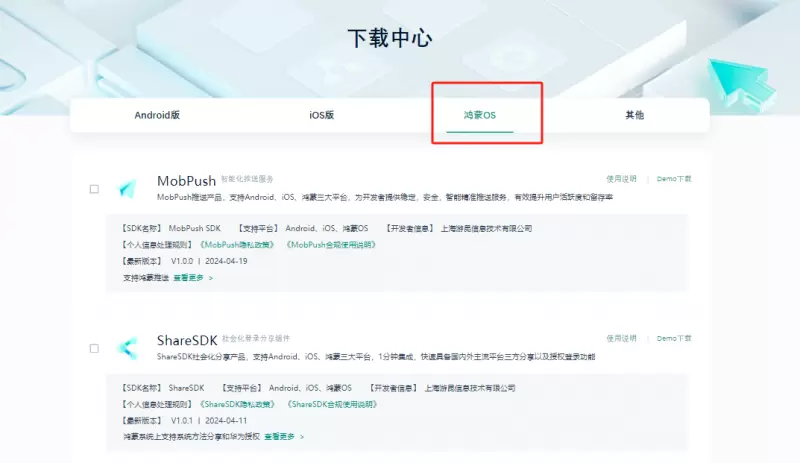 早在2021年6月,MobTech袤博科技就积极开展对HarmonyOS的研究与内测工作,并于同年8月完成了HarmonyOS版本ShareSDK的发布,支持国内主流社交平台的分享和登录。2024年1月起,短短三个月的时间,MobTech袤博科技旗下秒验、MobPush、ShareSDK等核心SDK产品适配版本已全部开发完成,并于4月全面上线,加入鸿蒙生态。据了解,加入鸿蒙生态的一系列开发工具,包括手机一键登录验证、智能消息推送、社交媒体分享组件等诸多类别,覆盖了APP应用开发的全周期需求。开发者可点击MobTech官网—开发者服务—SDK下载—鸿蒙OS下载使用。