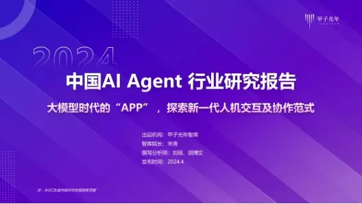 近期,甲子光年推出《2024年AIAgent行业报告》,旨在探讨AI Agent在概念变化,学术及商业界的尝试与探索,对各行业、各场景对于AIGC技术的需求进行调研及梳理,展示AI Agent领域近期的突破及商业实践范式,对未来行业的趋势进行研判。