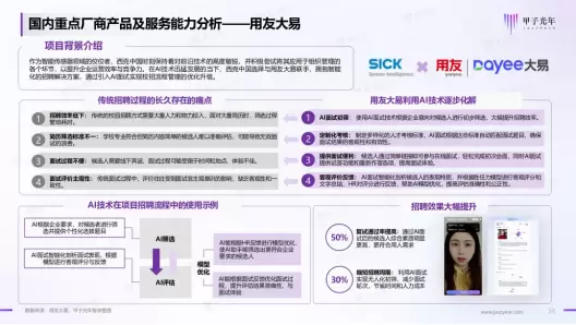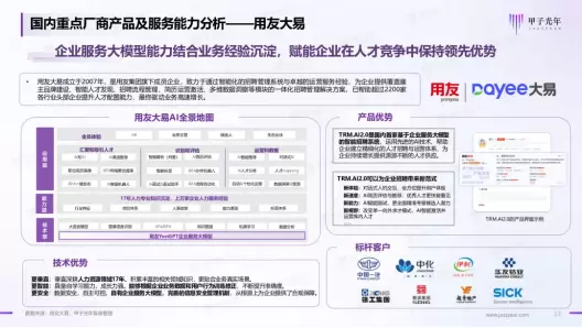 作为国内首家基于企业服务大模型为企业提供智能化招聘解决方案的厂商,用友大易凭借在招聘领域卓越的产品实力与服务落地经验,成功入选此报告。