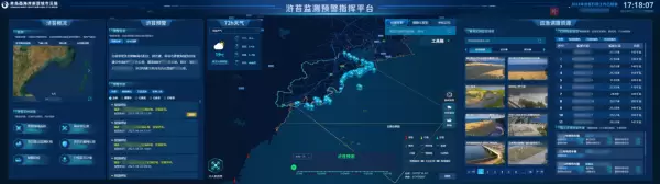 再如针对夏季易发生的浒苔灾害,海信在某市某区开发了监测预警系统。事前通过结合遥感识别的浒苔图斑,结合风场、海温等多种要素,实现浒苔生长与漂浮范围的预测。事中通过预测结果进行打捞布防,利用视频智能感知实现事件及时派发,保障打捞船只作业安全。事后通过最新遥感监测数据、预测数据、海上气象数据,进行综合研判浒苔的整体态势。