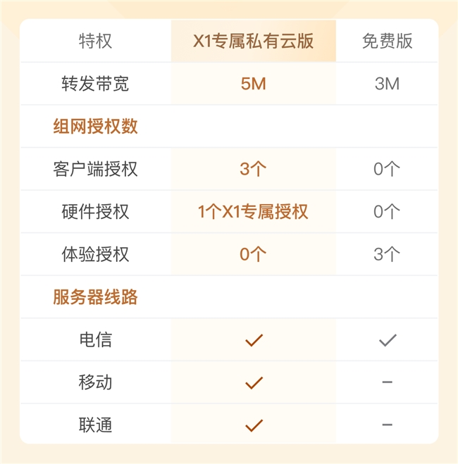 如果处于复杂网络环境,贝锐蒲公英也可自动采用转发传输,搭配X1专属私有云版服务(贝锐账号绑定X1,登录蒲公英软件客户端即可购买),可享5Mbps传输速率,满足各类文档、图片等传输需求。