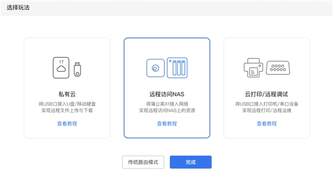 ● 使用贝锐蒲公英X1搭建私有云盘,只需将其接入家中网络,连接存储设备,开启文件共享功能。