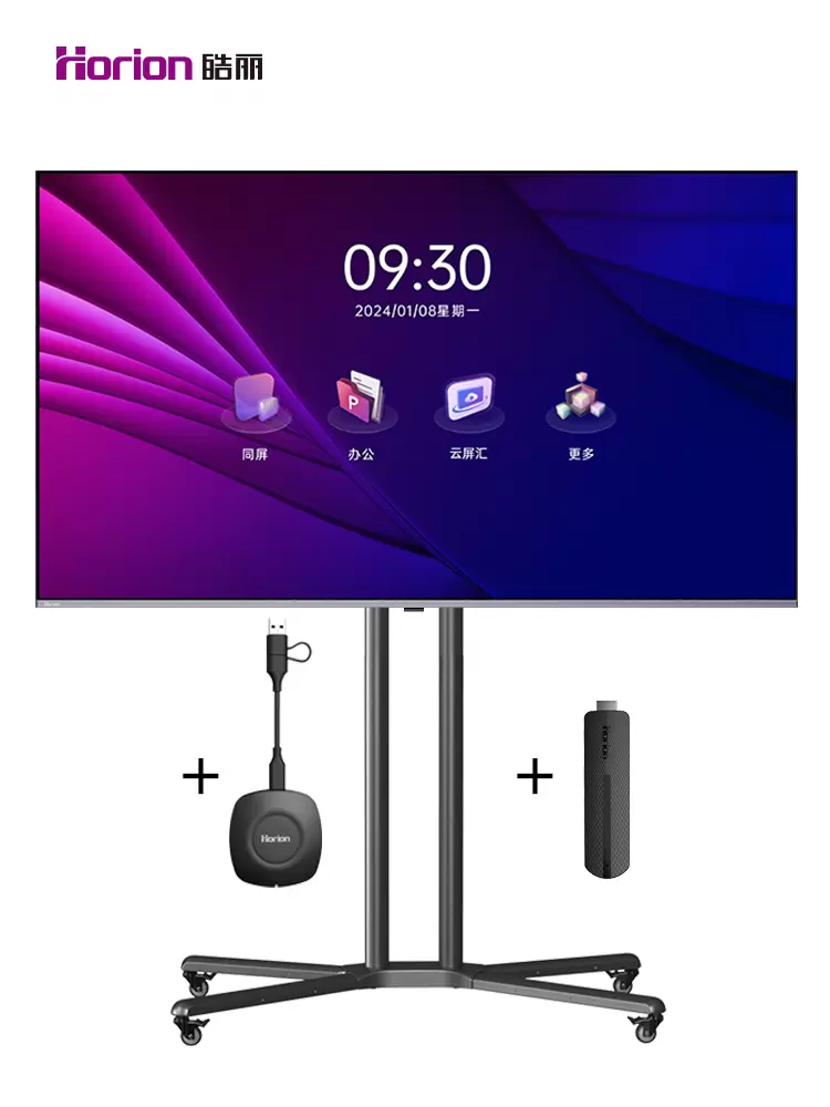 高清稳定投屏:皓丽会议电视支持手机、平板、电脑等移动设备快速无线投屏,同时免费搭配皓丽爆款投屏器HG-1S,能实现点对点的无线传输,不需要复杂的网络调试,操作上,分发射端和接收端,操作简单,支持4K投屏,高清稳定。