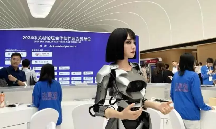事实上,在2024中关村论坛年会现场,就有随处可见服务型机器人。例如,一台名为“裸眼3D-AIGC小关机器人”颇受现场观众欢迎,引得路人纷纷驻足围观。据悉,这位仿生人形机器人打造的“迎宾”,不仅面部表情、肢体动作自然,经过前期“培训”,工作很“卖力”,与其对话,询问论坛举办位置、时间,都能“对答如流”。