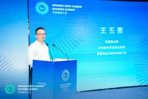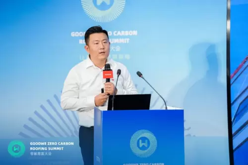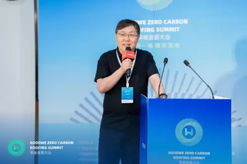 随后,固德威技术股份有限公司集团副总裁、光电建材事业部总经理王五雷代表主办方致欢迎辞。他分享了固德威在光电建材领域寻找合作伙伴的幕后故事,重申在零碳项目上打造一个开放生态而非闭环的重要性。近年来,建筑光伏一体化已然成为“热词”,他期待大会能够引导各方共同推动行业本身行稳致远,也希望借此机会向瓦屋面领域的“老师傅”取经,以共同完善各场景解决方案。发言的最后,他期待所有人共同倾注心血的建筑光伏一体化事业越来越好。