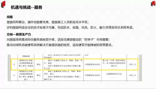 主题报告环节,大会首先聚焦建筑市场现状。由中国建筑防水协会副秘书长胡希宝带来的《瓦屋面市场现状及发展趋势分析》,结合协会市场走访调研收获,指出瓦屋面正在面临转型升级,必须拓展新赛道新出路;未来的瓦屋面企业应该向屋面系统综合服务商转型,提供低碳的系统解决方案;而光伏产业的利好政策,无疑为瓦屋面行业发展注入新的动力。