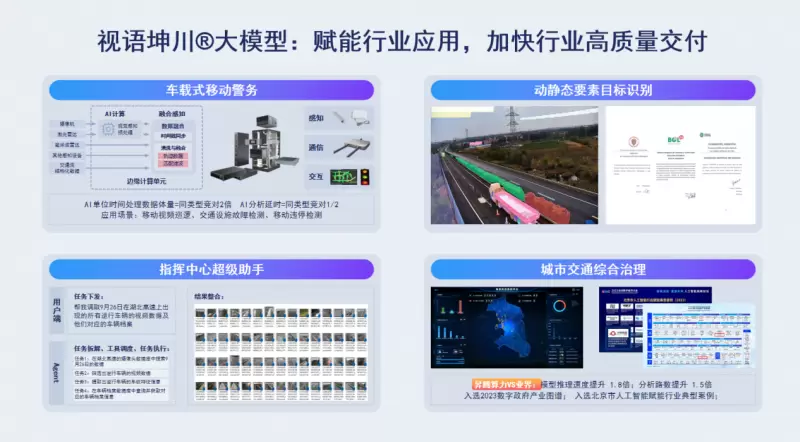 中科视语副总经理赵旭博士介绍:“视语坤川®大模型是基于行业知识和小模型基础打造的面向行业的基座大模型”。中科视语具备20年持续积累行业专业知识和成熟小模型经验,进一步融合大模型技术,基于昇腾算力和AI开发框架,打造面向行业的专业人工智能大模型视语坤川®。这些大模型将结合行业特有的历史数据、经验知识和业务流程,为行业带来新的突破。