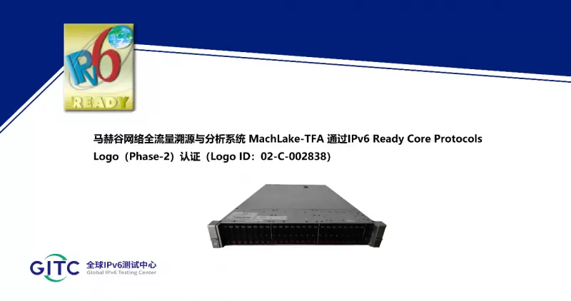 马赫谷网络全流量溯源与分析系统 MachLake-TFA 获得IPv6 Ready Logo证书