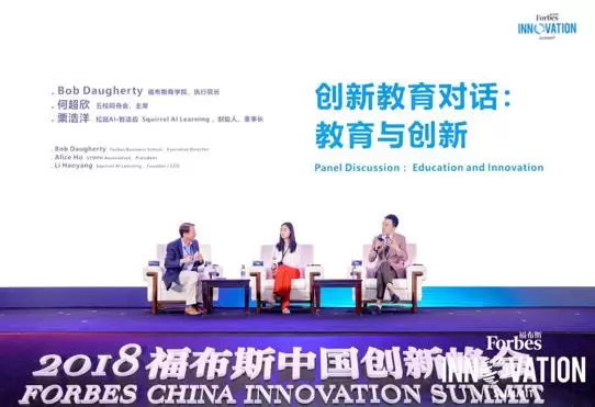 据了解,福布斯中国总裁李思卫,海尔集团董事局主席、首席执行官张瑞敏,携程网副董事长、联合创始人范敏、华为全球媒体传播总裁Joy Tan、福布斯商学院执行院长Bob Daugherty,松鼠AI智适应教育创始人栗浩洋,“澳门赌王”何鸿燊之女、联合国教科文组织伙伴何超盈等受邀出席了活动。栗浩洋与福布斯商学院执行院长Bob Daugherty及何鸿燊之女、MIT学霸何超欣的创新教育对话中表达到,国外已经有八九千万的用户在使用人工智能教育,目前中国的K12教育市场尽管是一个拥有六千亿级别规模的市场,但大多数现存产品却并没有摆脱中国教育死板无创意和中央标准化供应的诟病。在这样的市场现状下,栗浩洋受到了当时全球人工智能旋风的启发,创造性的提出了”AI超级老师“的概念。他带领团队用时四年时间打造了松鼠AI——国内第一个拥有完整自主知识产权、以算法为重中之重的人工智能自适应学习引擎。
