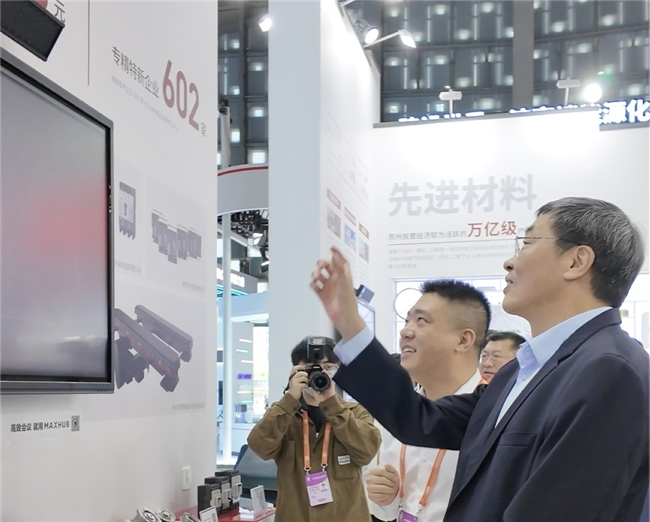 在江苏展馆,视源股份旗下的MAXHUB领效、希沃(seewo)、Goodview、QSTECH青松光电四大品牌展示了针对不同行业的显示解决方案,满足了用户在会议、教育、商场、户外等场景的使用需求。江苏省委常委、副省长、省政府党组副书记马欣,苏州市委副书记、市人民政府市长吴庆文在展位听取了视源股份苏州战略资源负责人包延峰对公司在电子视听领域的创新成果汇报,并对视源股份教育、会议交互智能平板给予了肯定。
