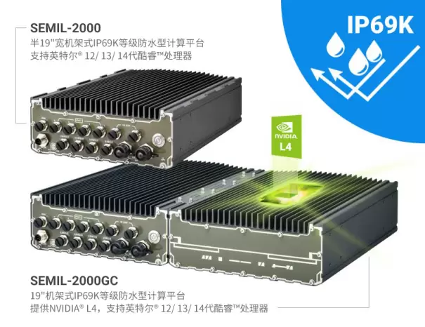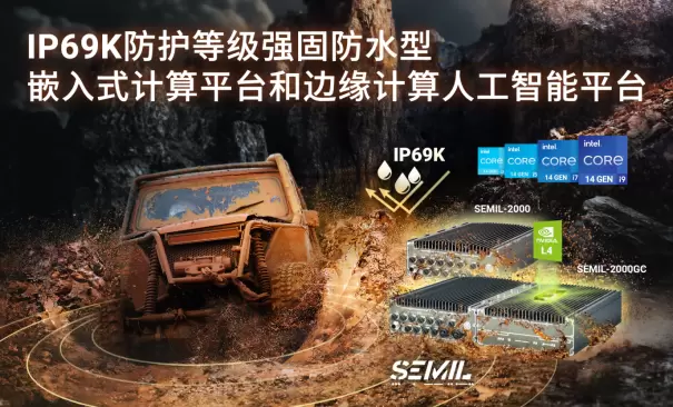 强固型嵌入式计算平台厂商Neousys宸曜科技发布了具备IP69K防护等级的SEMIL-2000系列,扩大了SEMIL系列的产品线。SEMIL-2000系列支持英特尔® 12/ 13/ 14代酷睿™ LGA1700处理器,且其中一款可以支持NVIDIA® L4 GPU。SEMIL-2000系列的全型号都可以支持-40℃至70℃宽温运行。SEMIL-2000系列拥有耐腐蚀的不锈钢和铝制机箱和IP69K防水认证,并符合MIL-STD-810H抗振动/冲击标准,可以应用在尘土飞扬、潮湿和腐蚀性环境中,是实现军用无人地面车辆、采矿卡车或农业拖拉机自动驾驶应用的理想选择。