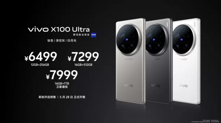 vivo X100系列三款新品价格在此次发布会上公布,其中vivo X100 Ultra有12GB+256GB、16GB+512GB、16GB+1TB(卫星通信)版本,售价分别为6499元、7299元、7999元;vivoX100s有12GB+256GB、16GB+256GB、16GB+512GB、16GB+1TB版本,售价分别为3999元、4399元、4699元、5199元;vivo X100s Pro有12GB+256GB、16GB+512GB、16GB+1TB版本,售价分别为4999元、5599元、6199元。