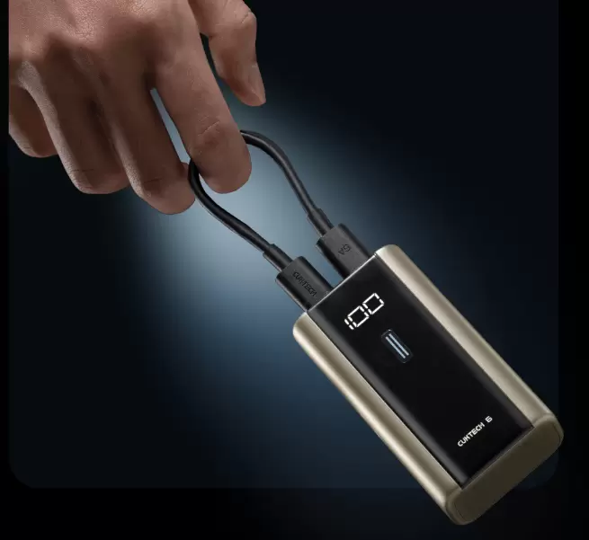 除此之外,针对自带线充电宝的自带线已损坏问题,酷态科6号提出可拆卸式自带线设计。包装内自带15cm便携数据线,在不使用的时候,可将数据线两端分别插入6号自带的两个口内,实现数据线的便携收纳功能。