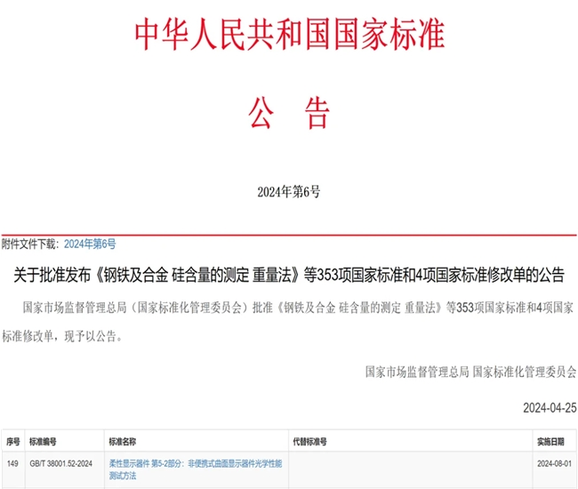 近日,由TCL华星牵头制定的国家标准《柔性显示器件第5-2部分:非便携式曲面显示器件光学性能测试方法》(GB/T 38001.52-2024)正式发布。该标准的发布,不仅彰显了TCL华星在曲面显示技术的领先地位,更为电竞显示器市场的规范化、高品质发展奠定了坚实基础,标志着我国在高端显示技术领域迈出重要一步。