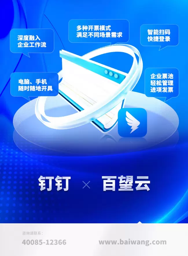 双方合作后,会基于钉钉在企业移动办公领域的基础设施上,全面释放百望云在票财税档链系列产品的技术能力,帮助企业快速实现数电票开具能力,并建立起高效、智能的数电票管理能力。
