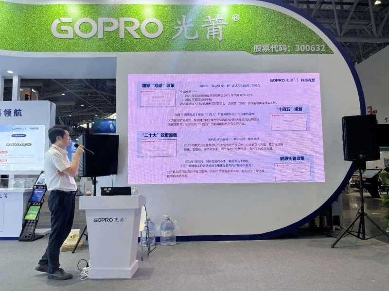 光莆股份项目总监杨元勇发布“全场景数字低碳能源托管”,阐述通过技术改造实现节能减碳、智能管理提升效率的有效途径,帮助企业和社会降本增效,推动城市全场景整体向绿色、低碳、可持续的能源模式转变。