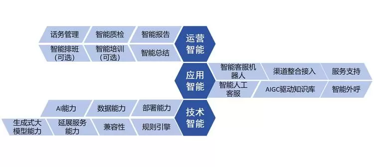该标准包括技术智能(35项指标)、应用智能(73项指标)、运营智能(27项指标)三大能力域,AI能力、数据能力、生成式大模型能力、智能客服机器人、智能人工客服、智能报告、智能总结等十九大能力子域。