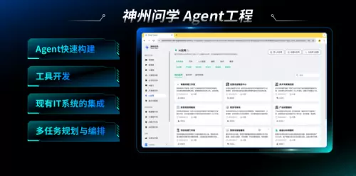 工程化的Agent开发是神州问学的一大亮点。传统AI开发中的繁琐与低效在此被彻底颠覆。平台提供了一套标准化流程和最佳实践模板,使得Agent的创建不再是孤立的、一次性的任务,而是能够遵循明确的步骤,不断迭代优化,形成工程化的工作流。通过智能插件集成、知识挂载、多轮对话支持等功能,Agent不仅能够精准执行任务,还能自我学习、自我调整,实现与用户意图的深度匹配。
