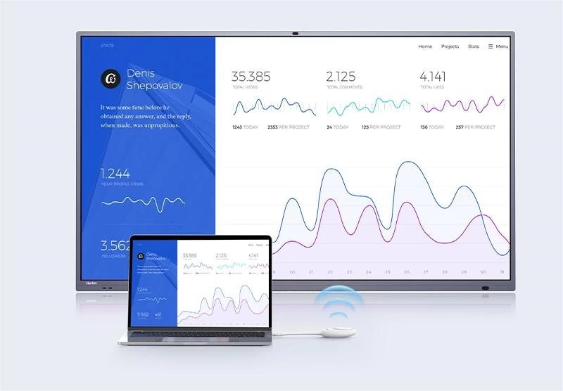 在同屏器配置上,皓丽全新一代会议平板采用全新研发的HT-6同屏器,采用Type-C接口,同时支持转接USB,更多设备通过HT-6同屏器与皓丽M5二代进行投屏分享,可实现4K投屏,图文、视频更细腻,在投屏流畅度上也达到了新的高度。