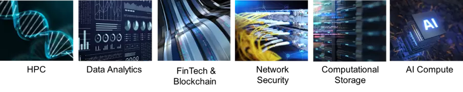 该加速卡还非常适合计算存储和数据分析,能够在同一张卡上集成压缩和查询加速,从而增加有效存储容量,同时更快获得洞察。此外,它还适合于各种金融科技应用,包括策略回测、期权定价以及金融建模与仿真。