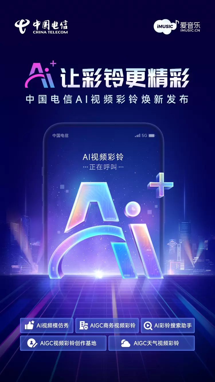 AI+时代浪潮已至,中国电信正着力构筑自主创新的算力底座,助力AI+赋能产业升级。中国电信爱音乐将积极拥抱新质生产力,加速AI视频彩铃内容生产、技术创新与用户体验的融合,拓展AI视频彩铃应用新场景,升级新业态,共赢AI+发展新格局!