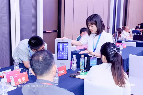 活动下午,达实智能带来了可互体验的智慧园区互动体验课堂,从智慧园区的数字化中枢、人性化通行、员工办公体验、园区的节能低碳运行、高效运营及招商等维度分享共创。现场来宾体验了达实自主研发的AIoT平台的丰富组件,也通过现场展示的20+块空间场景交互屏了解了小达物联小程序的便捷应用。
