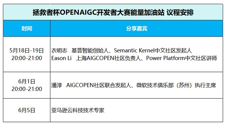- 4场线上技术指导+4场线下城市沙龙,OPENAIGC开发者大赛能量充电走起!