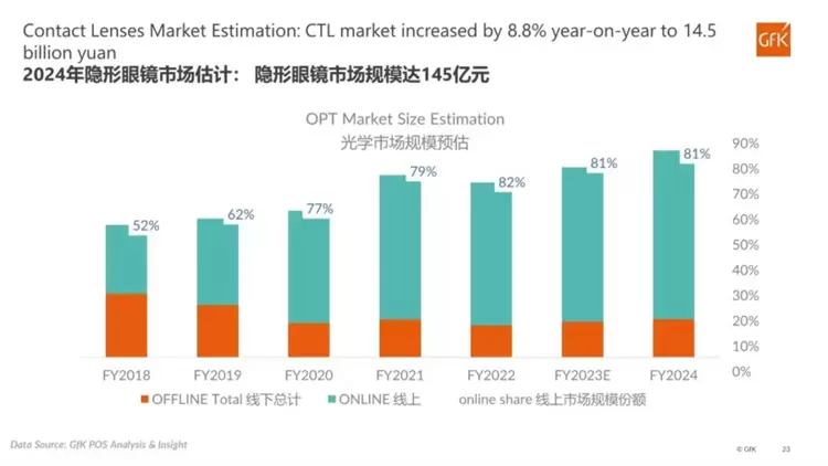 隐形眼镜市场方面,GfK预计,2024年中国隐形眼镜市场销售额规模将达到约145亿元人民币。