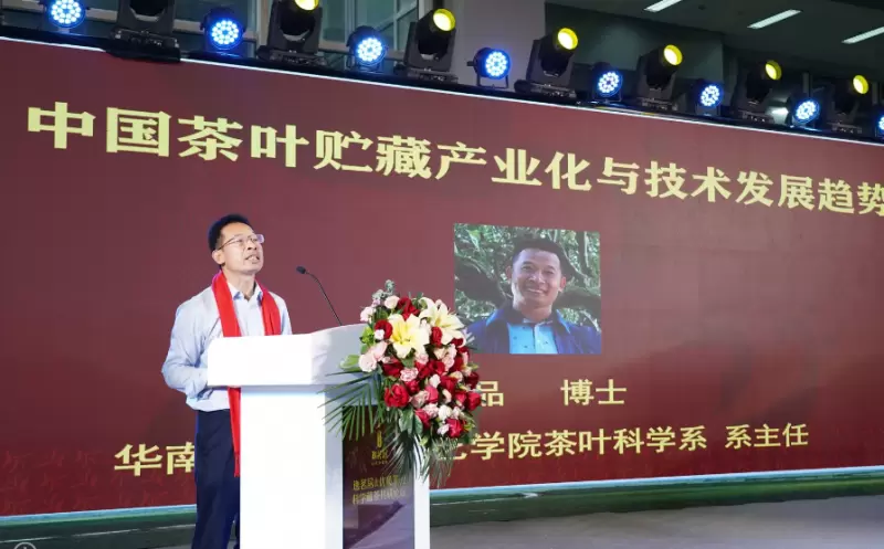 两位领导致辞完毕后,接着就是本次论坛活动的一大亮点:《中国藏茶产业与技术发展报告》的正式发布。该报告由深耕中国茶叶研究领域的华南农业大学茶学系陈文品博士,深入剖析了当前我国藏茶茶叶贮藏产业化发展趋势、茶叶贮藏技术发展趋势和茶叶收藏投资收益影响因素复杂化趋势。报告显示茶叶的陈化生生香为茶叶带来的价值,同时指出全产业链合作方能实现优质年份茶产业化健康发展,茶叶藏养环境设备与调控技术对藏茶起着至关重要的作用。
