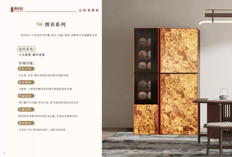 博养系列,一柜实现六大茶类科学贮藏,陈化、纠偏、调谐、保鲜等全功能藏养空间。