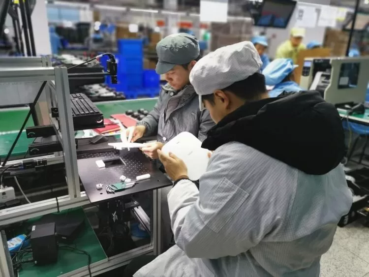 图为中国联通中南研究院专家为恒茂高科智慧工厂搭建AI质检平台