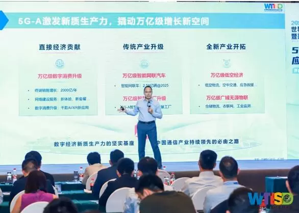 图:华为无线网络产品线总裁曹明在5G-A建设与应用创新发展论坛做主题发言