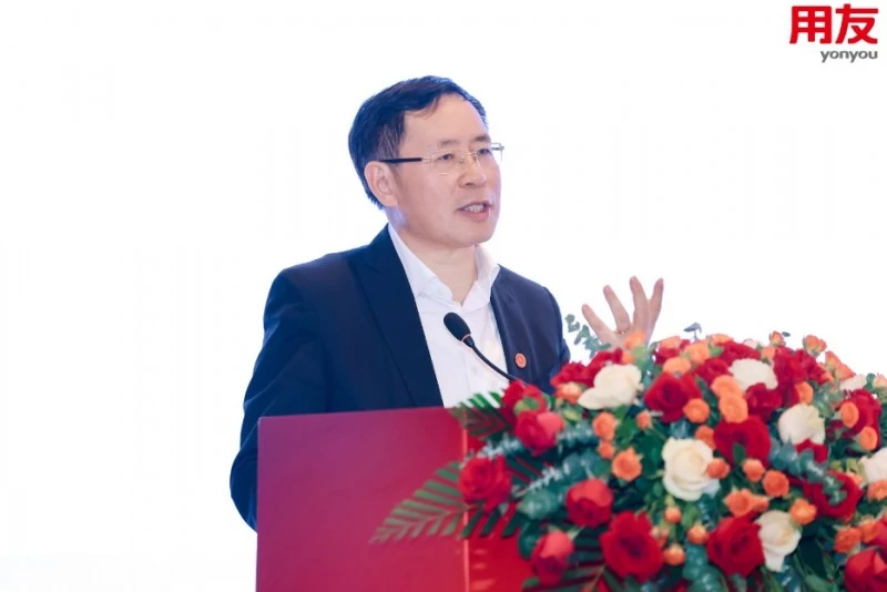 用友网络董事长兼CEO王文京为大会做主题演讲。他表示,发展新质生产力是推动企业实现高质量发展的核心路径之一,新质生产力特点是创新、关键在质优、本质是先进生产力。发展新质生产力要以科技创新为核心驱动力,让数据成为关键生产要素,加速数智化商业创新。