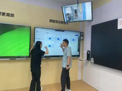 在智慧教室场景中,安道教育展示首款电容110寸双屏拼接形态的智慧黑板Q系列,可实现多种教学模式的切换,适合各类教室应用需求,其高度集成的功能特色受到众多参展者的青睐。