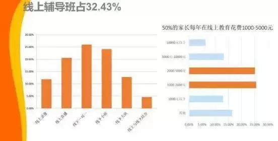 K12、素质教育、职业教育、出国留学….目前教育市场已经细分成了多个赛道,其中K12和英语培训的赛道优势更为突出。 拿K12教育来说,根据公开数据显示,从学生人数看,2016年K12在校生人数合计1.83亿。再加上“二胎”政策影响,这一人数毫无疑问将持续增长。另外根据《2017中国家庭教育消费白皮书》数据显示,教育支出占家庭年支出的50%以上,50%的家长每年为孩子在线上教育花费1000-5000元。