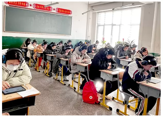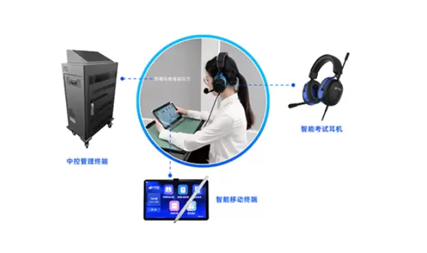 本次考试采用佳发教育新一代英语听说AI解决方案,突破传统机房空间限制,使用“智能移动终端+智能考试耳机+中控管理终端”的轻量化部署方式,任何一间教室均可轻松“变身”为标准化考场,新一代英语听说AI解决方案具备多个优势亮点,有效实现了考试公平性与组织效率的双赢。