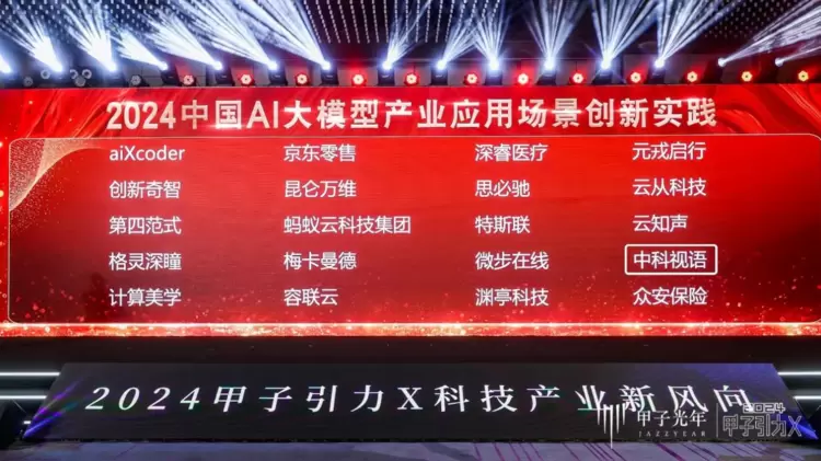 5月15日,甲子光年“AI创生时代——2024甲子引力X科技产业新风向大会”成功举办。大会公布了2024星辰100创新企业榜,中科视语荣登「2024中国AI大模型产业应用场景创新实践」榜单。本次入选,标志着中科视语在技术革新、AI商业化落地能力、应用场景创新、行业发展潜能等方面获得了业内的认可与鼓励。